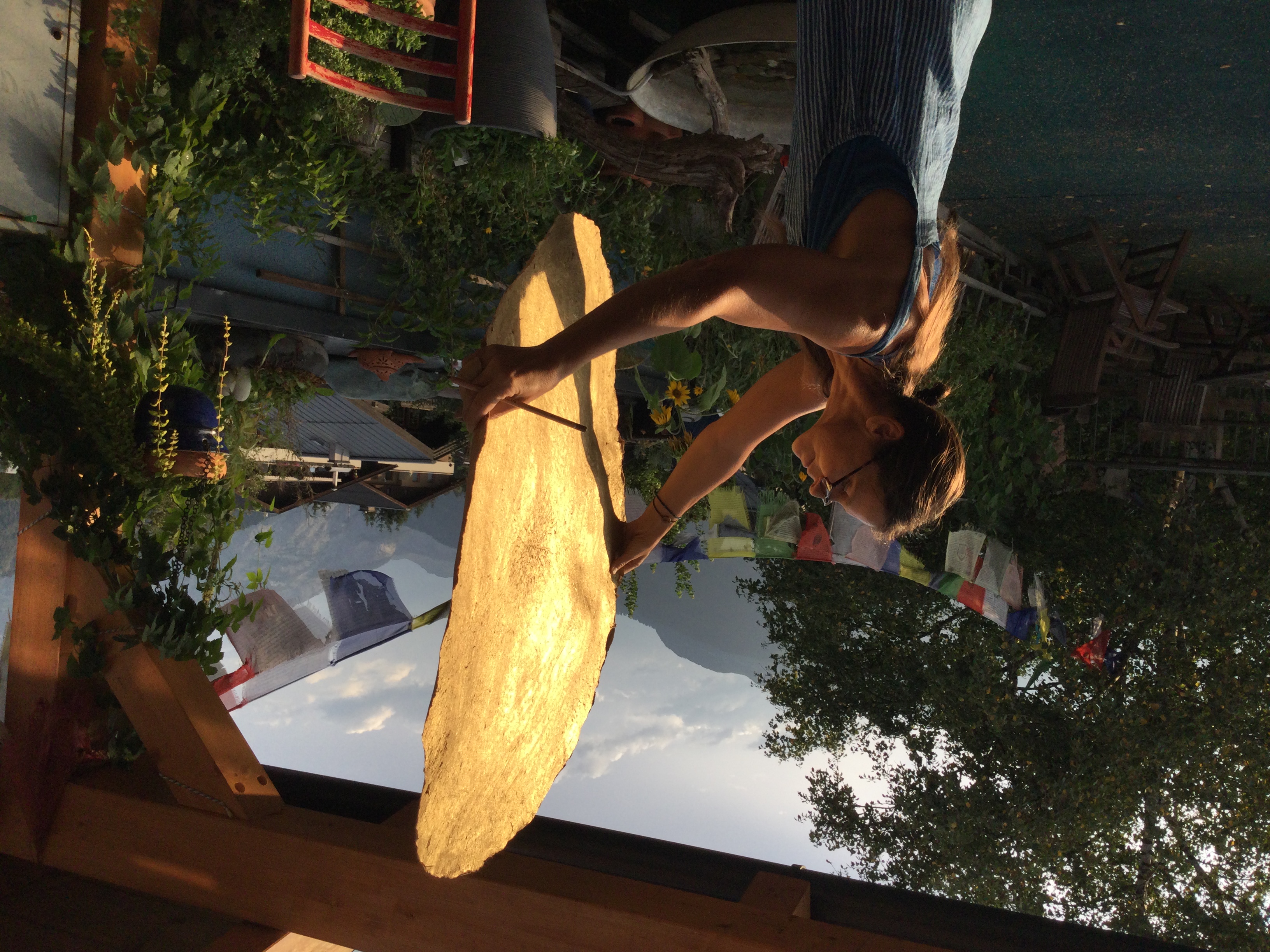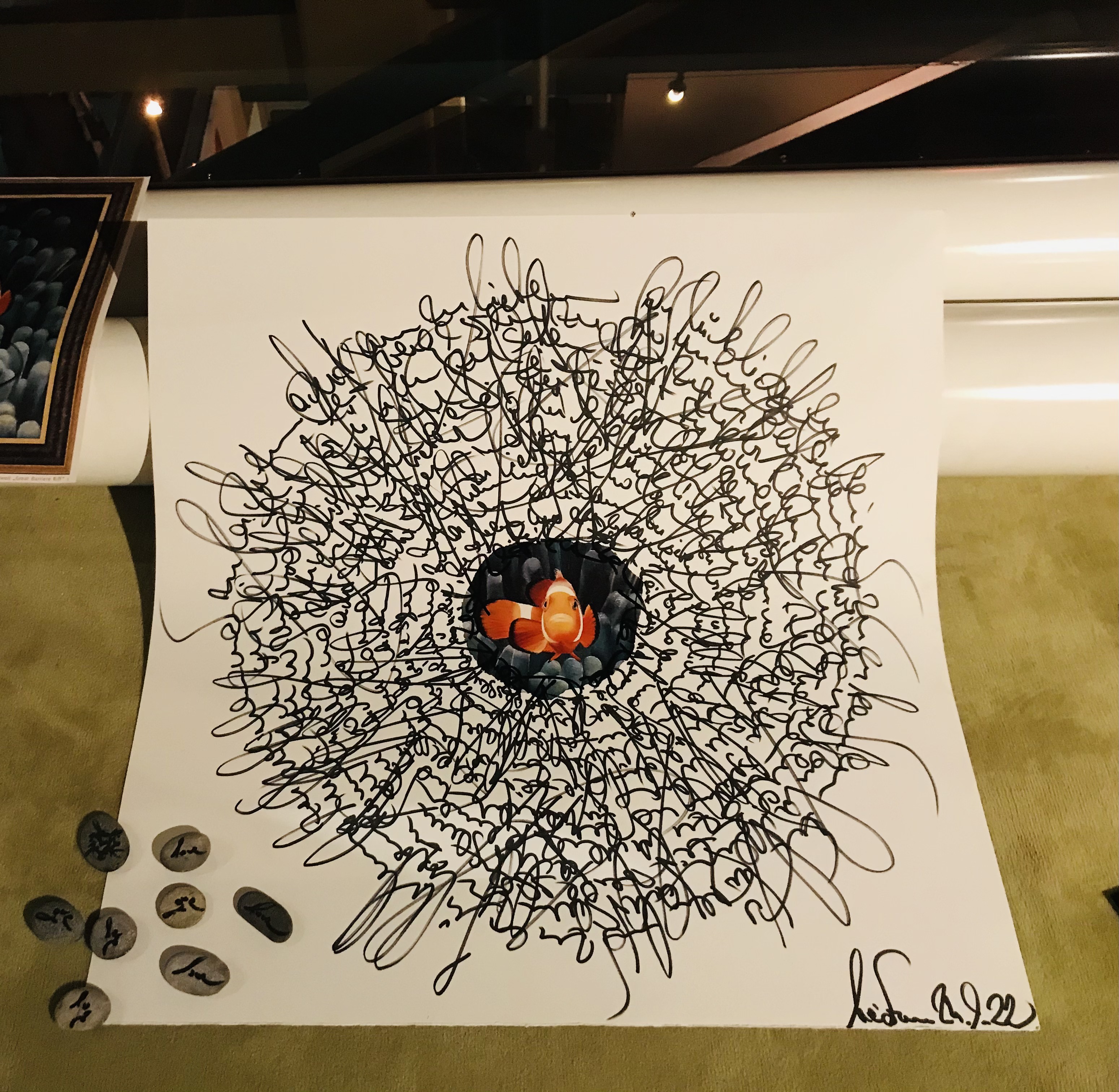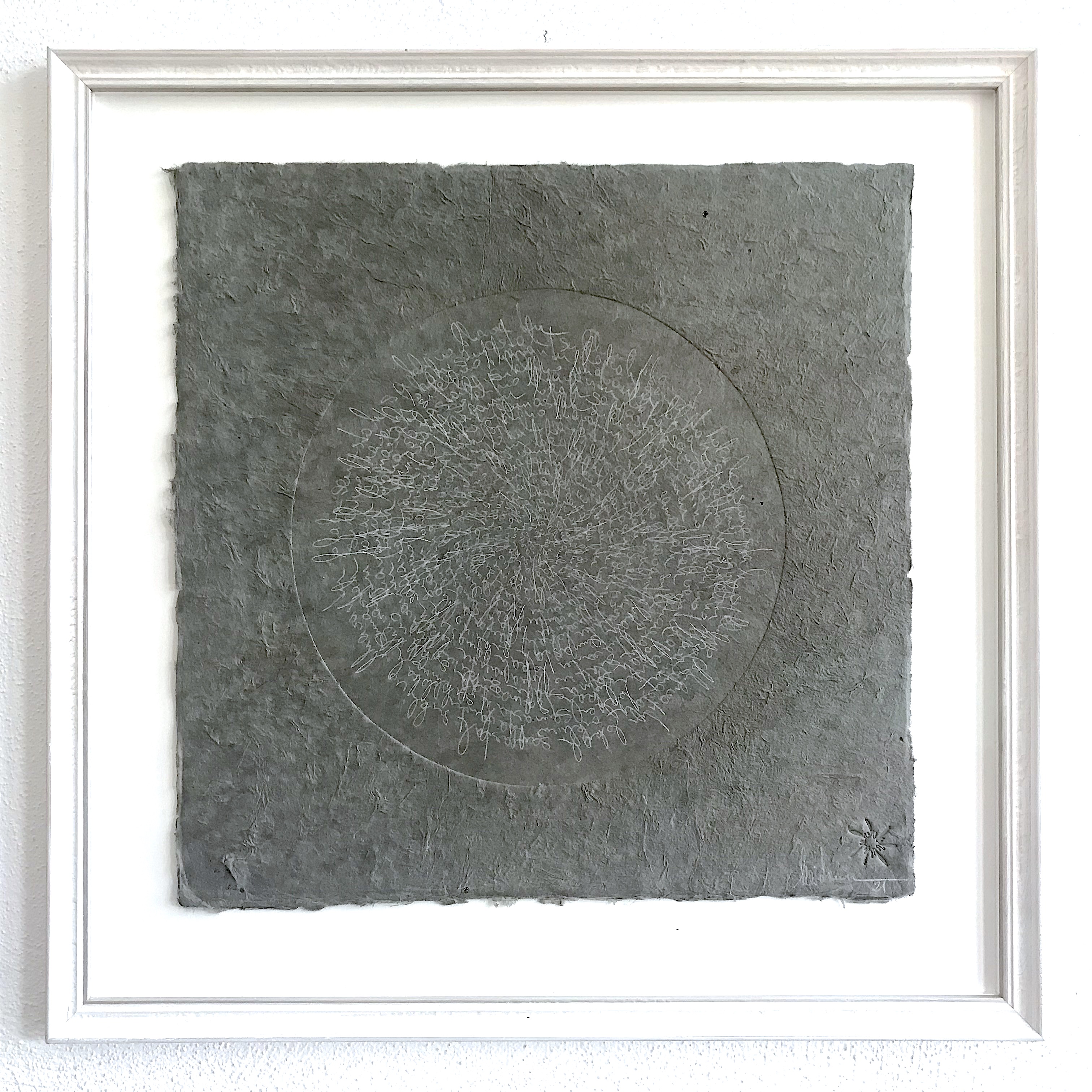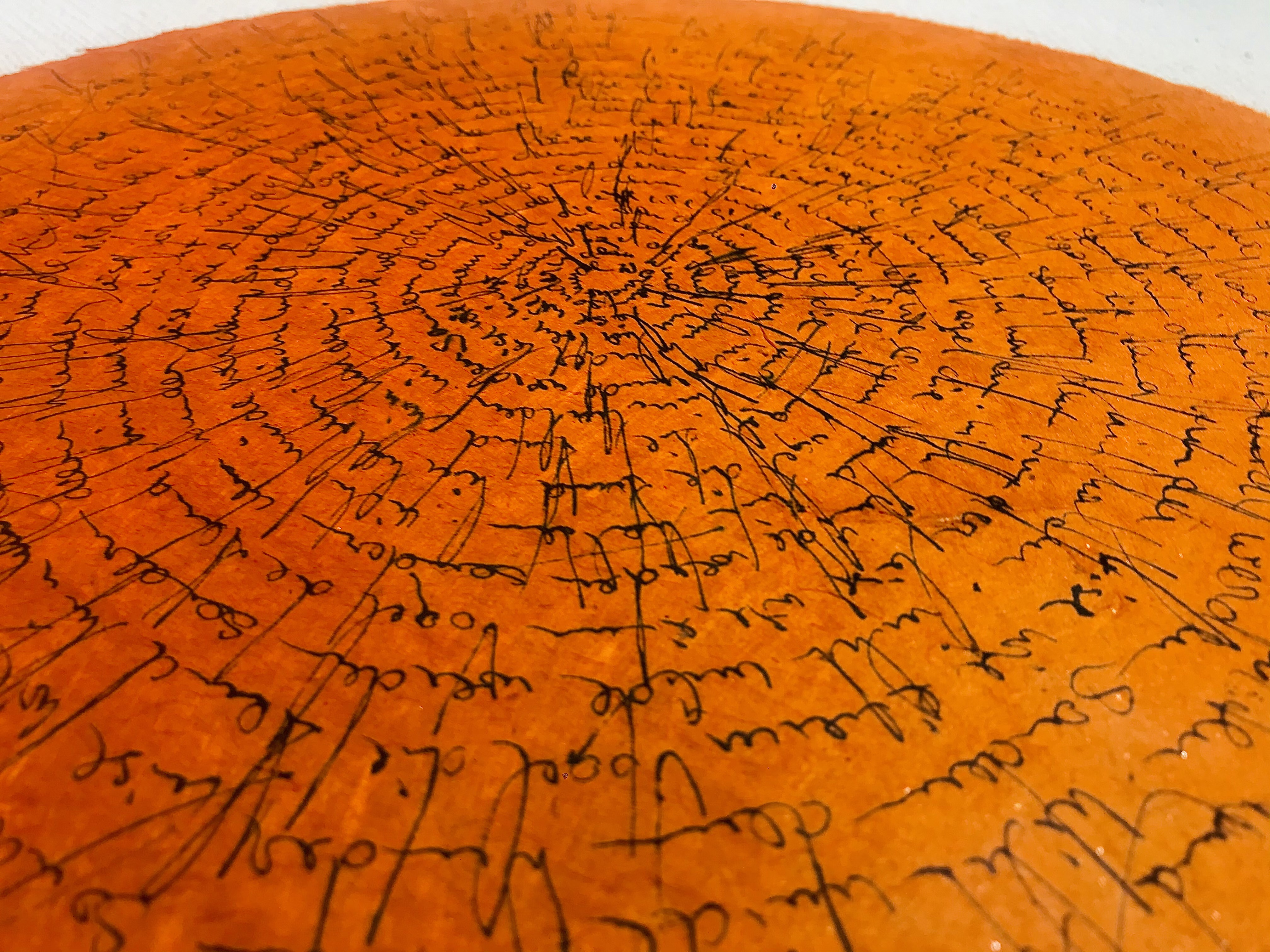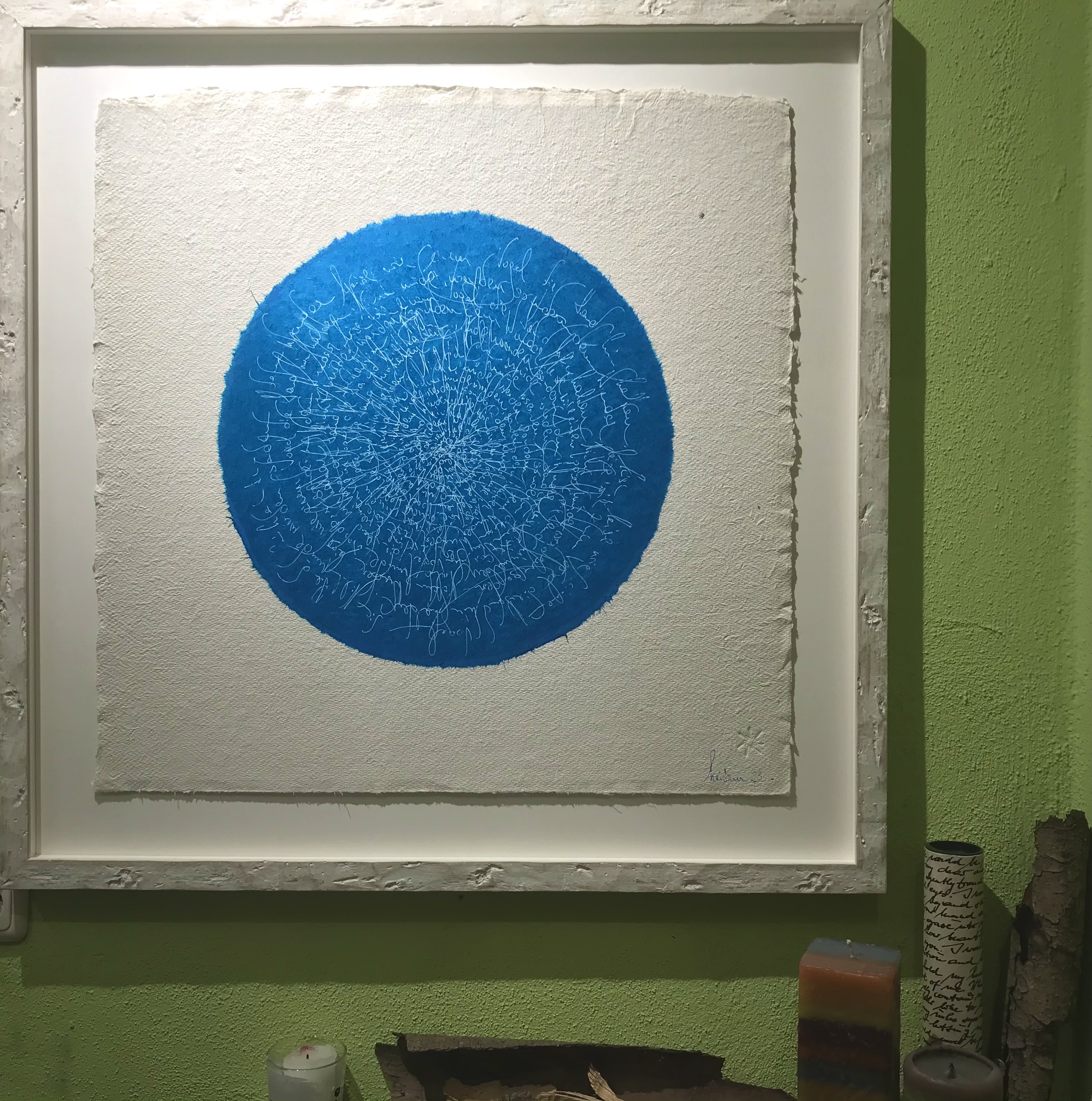Heidrun wirkt an der Seite von Christian Fuchs in der Buchbinderei Fuchs als Druckwerkstattleiterin und Kreativtrainerin mit Schwerpunkt Malen und Gestalten nach therapeutischen Ansätzen. Durch die Begeisterung zur Handschrift lässt sie ganz besondere Schriftbilder entstehen. Wie ein Mantra wiederholen sich die Worte, bauen ein Energiefeld auf, verschmelzen mit dem handgeschöpften Nepal-Büttenpapier zu einem Gesamt-Kunstwerk. Die sorgfältig ausgesuchten Botschaften/ Gedichte/ Wünsche werden handschriftlich in einen optisch perfekten Kreis geformt - Kreisformen die die Künstlerin schon lange faszinieren.